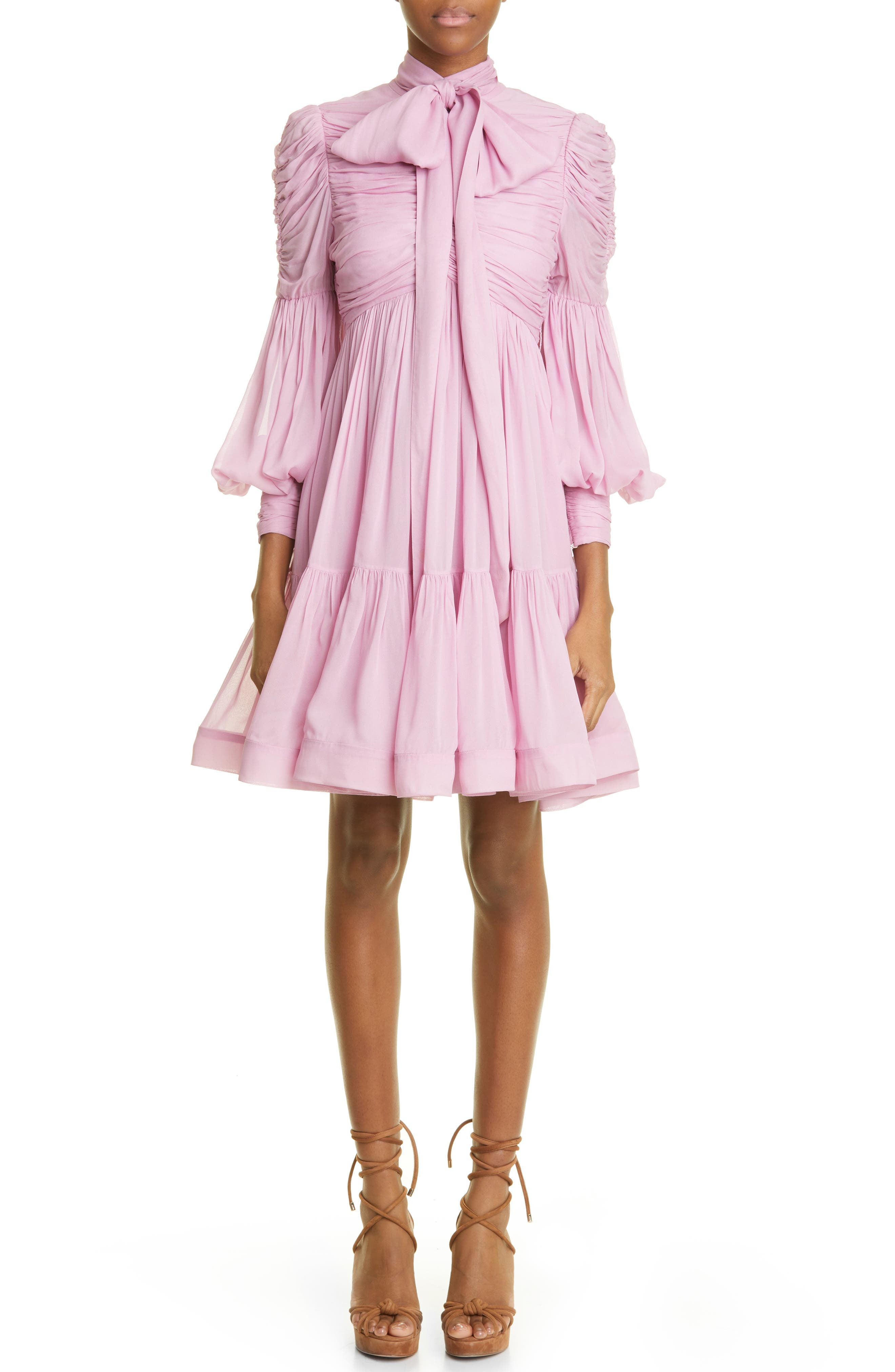 Zimmermann Celestial Ruched Tie Neck Chiffon Dress Nordstrom